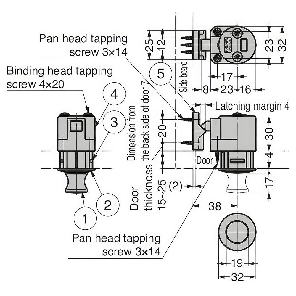 Sugatsune DPL-RO-CR Lamp Push Knob Latch Krom